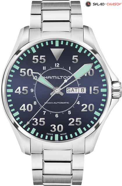 Мужские часы. Индикация часов, минут, секунд центральными стрелками. Апертура даты и дня недели в положении 3 часа. Люминесцентное покрытие на стрелках и разметке. Завинчивающаяся заводная головка.