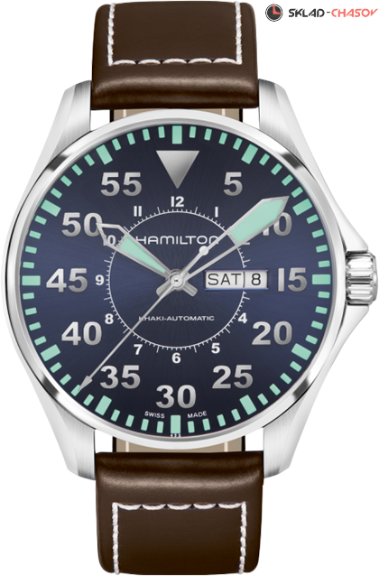Индикация часов, минут и секунд центральными стрелками. Окошко даты и дня недели в положении 3 часа. Люминесцентное покрытие.