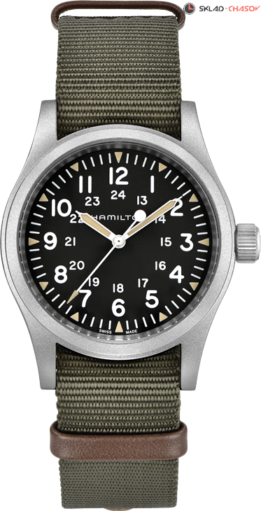 Воссозданный дизайн модели 1940-х годов в милитари стиле. Индикация часов, минут и секунд центральными стрелками. Люминесцентное покрытие.