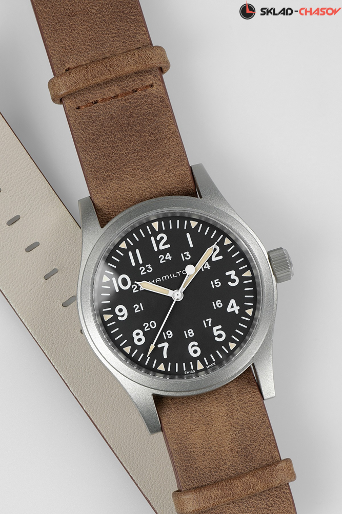 Милитари дизайн модели 1960-х годов в матовом корпусе. Индикация часов, минут и секунд центральными стрелками. Люминесцентное покрытие в цвете старого радия.