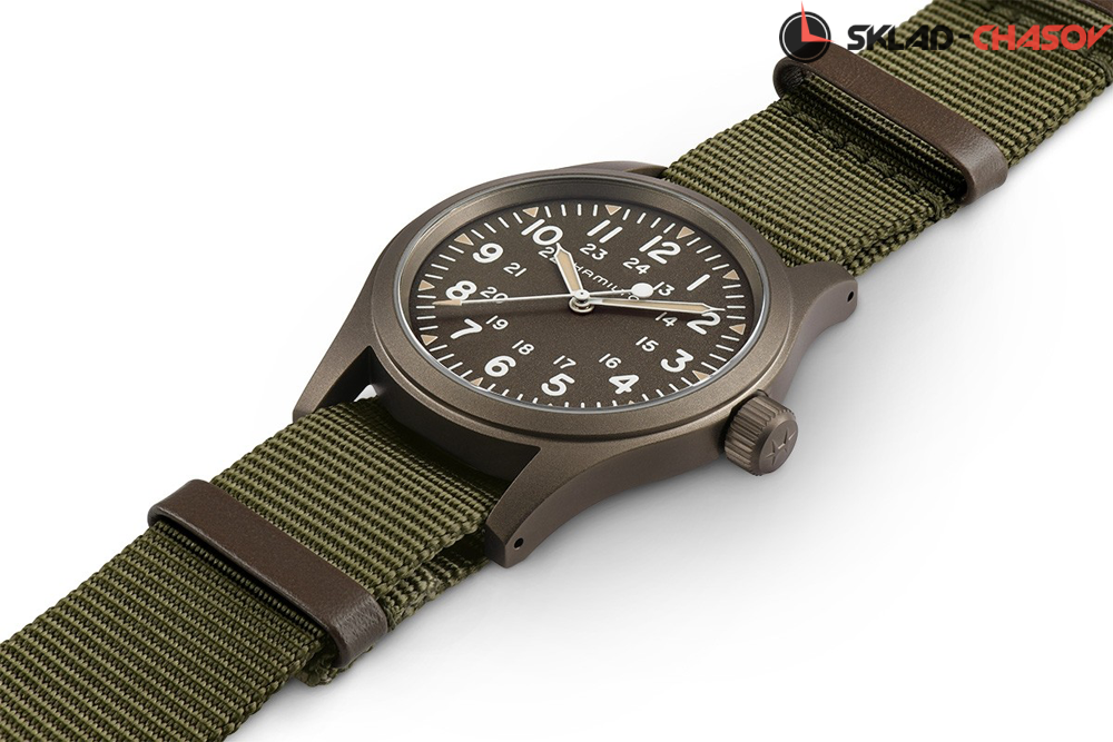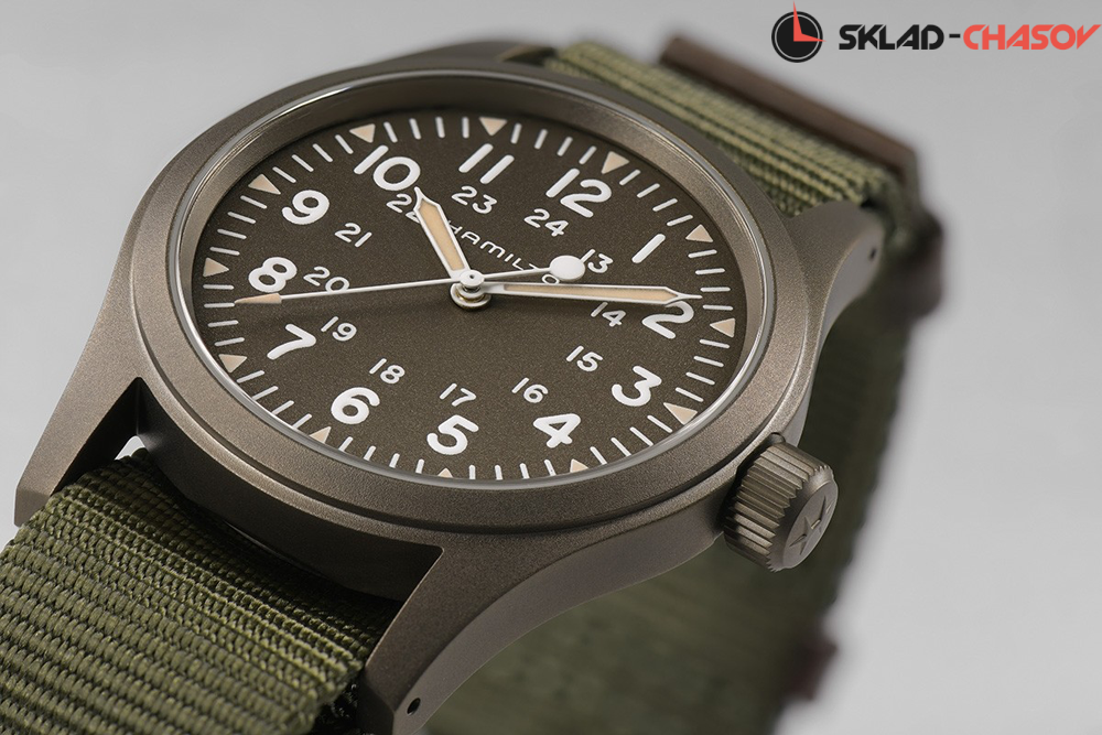 Милитари дизайн модели 1960-х годов в матовом корпусе. Индикация часов, минут и секунд центральными стрелками. Люминесцентное покрытие в цвете старого радия.