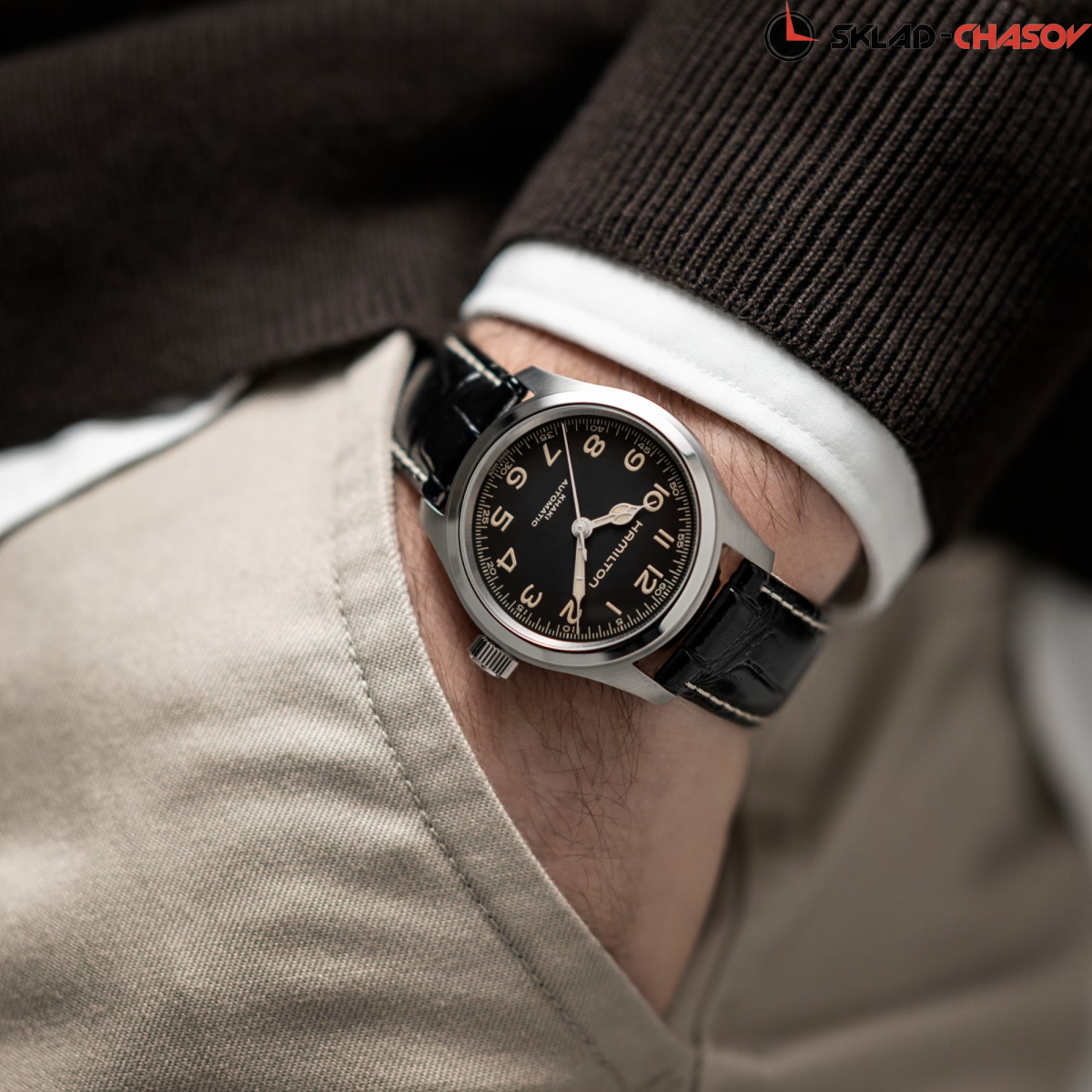 Модель стала одной из самых известных часов в мире научной фантастики, прославившаяся под названием «часы Мерф», теперь оснащена компактным 38-миллиметровым корпусом из нержавеющей стали. Циферблат черного цвета с легко считываемыми показателями, стрелки в винтажном стиле с покрытием Super-LumiNova® бежевого цвета и черный кожаный ремешок отражают эстетические коды предшествующей модели с 42-миллиметровым корпусом. Часы с автоматическим механизмом H-10 с 80-часовым запасом хода, точно завоюют сердца любителей миниатюрных моделей.
