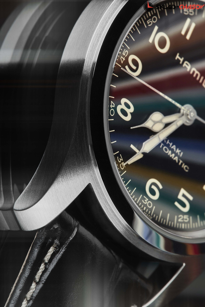 Специальная серия. Часы, появившиеся на запястье Мерф, главной героини фильма "Интерстеллар". С надписью «Эврика», напечатанной азбукой Морзе на лаке на секундной стрелке. Обратите внимание, что Khaki Field Murph будет поставляться со стандартной коробкой Hamilton (как показано на рисунке).