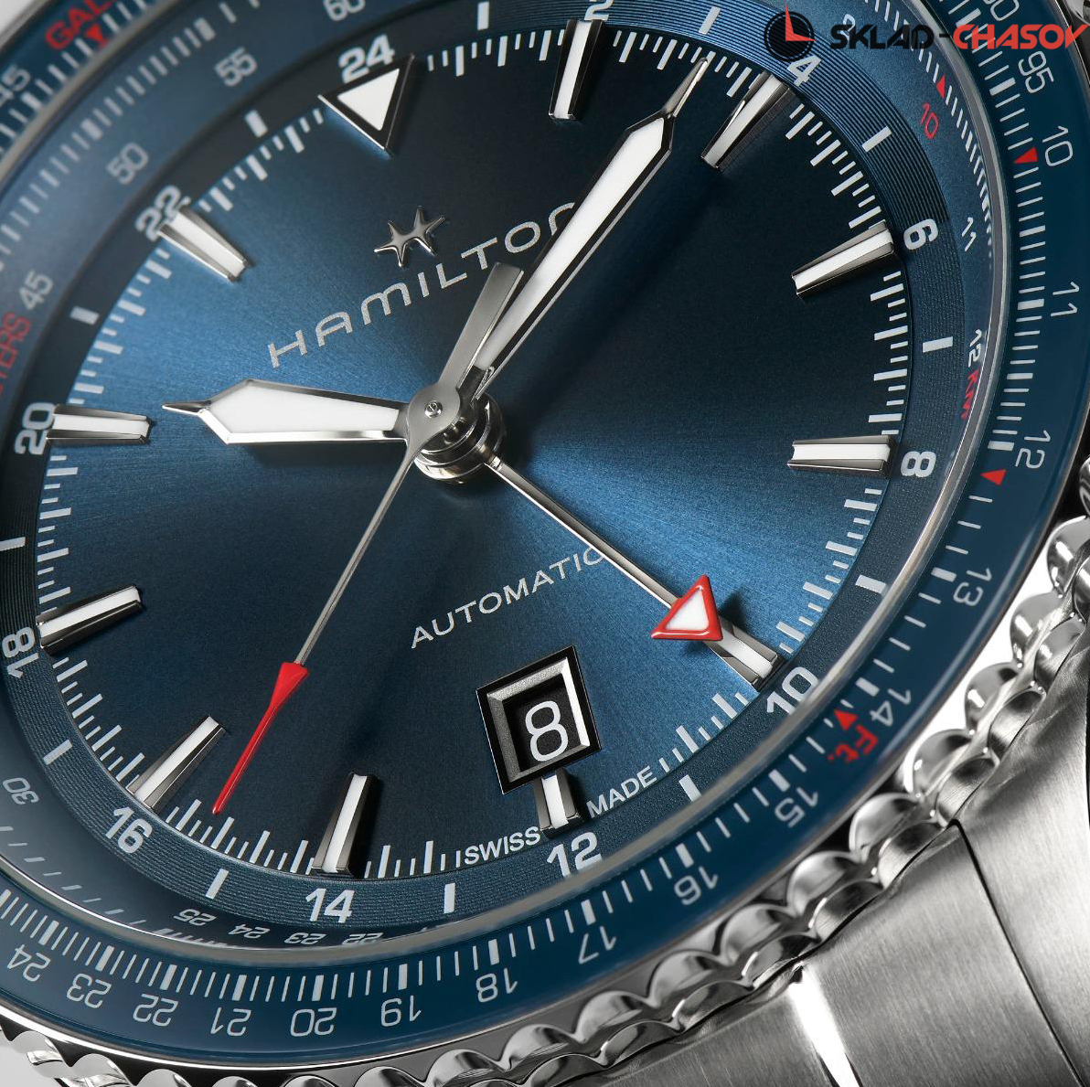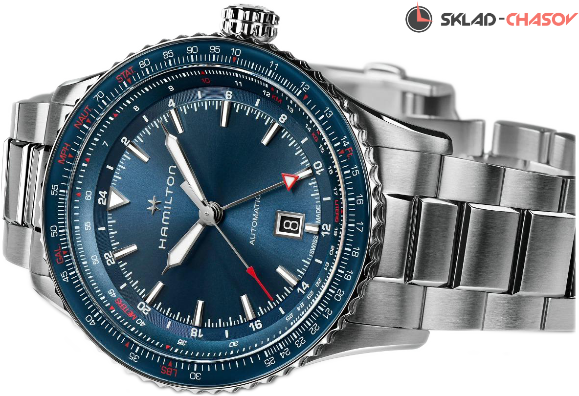 Мужская механическая модель с автоподзаводом, вращающийся безель в двух направлениях с логарифмической шкалой, функция GMT. Индикация часов, минут и секунд центральными стрелками. Окошко даты в районе 6 часов.