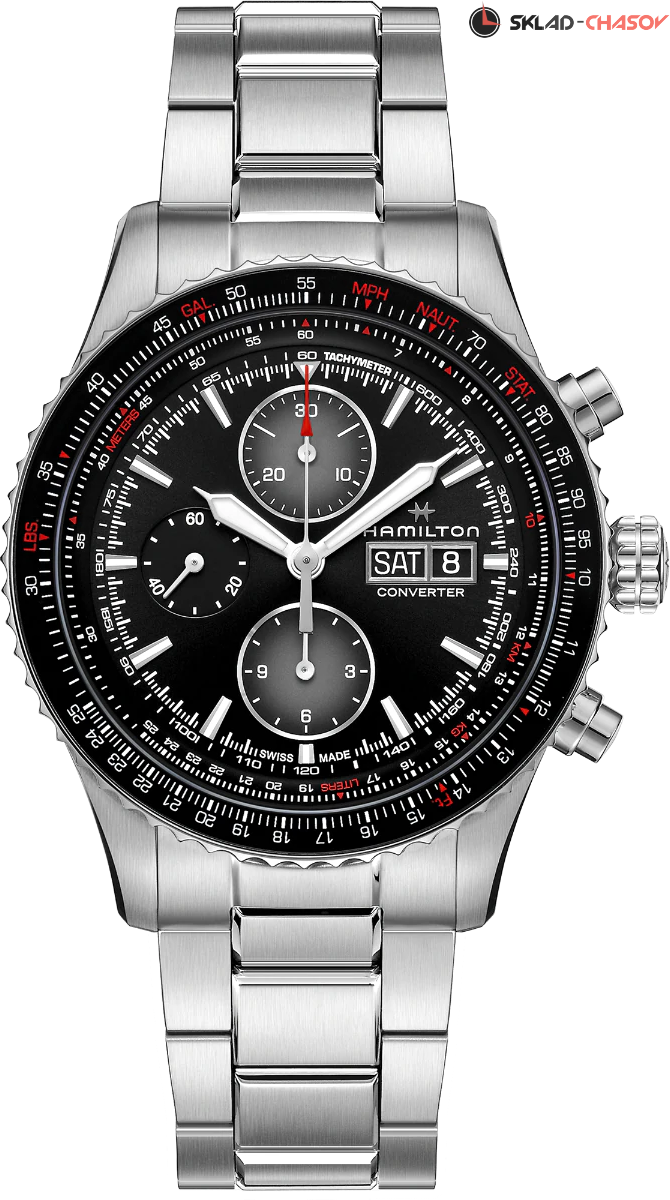 Хронограф, оснащённый логарифмическим безелем, вращающимся в двух направлениях, позволяющий переводить в различные единицы измерения: футы в метры, мили в километры, а также, для конвертации валют. В механизме хронографа используется антимагнитная кремниевая спираль.