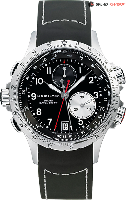 Сложная модель с авиационными функциями расчета. Хронограф, логарифмическая линейка, вращающаяся шкала. Индикация даты в положении 6 часов.