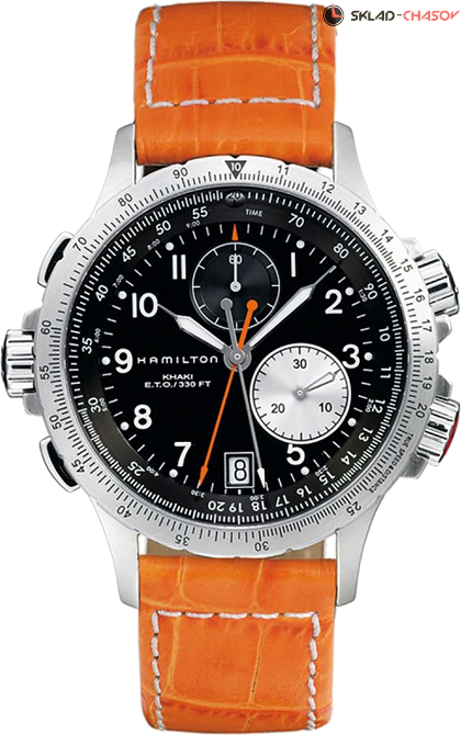 Сложная модель с авиационными функциями расчета. Хронограф, логарифмическая линейка, вращающаяся шкала. Индикация даты в положении 6 часов.
