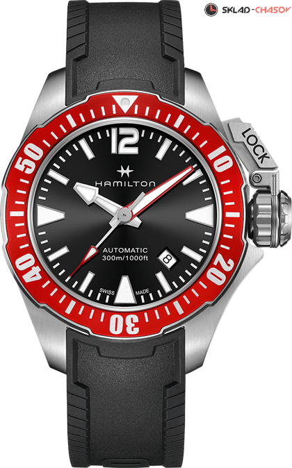 Дайверские часы. Однонаправленно вращающийся безель. Люминесцентное покрытие. Окошко даты между 4 и 5 часами.