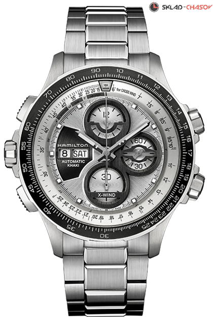 позволяет рассчитывать угол сноса, удовлетворяя техническим и эстетическим требованиям всех любителей авиации. Циферблат Khaki X-Wind Limited Edition предлагает потрясающий 3D-эффект. Ступенчатая архитектура и многоуровневая форма подсказывают взгляду выбранное направление, будь то один из трех счетчиков хронографа, окошко даты на отметке 9 часов или обод и вращающийся безель с нанесенными миниатюрными цифрами.
