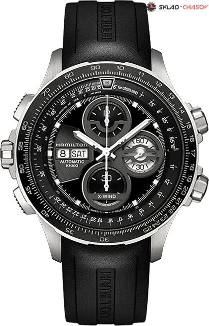 позволяет рассчитывать угол сноса, удовлетворяя техническим и эстетическим требованиям всех любителей авиации. Циферблат Khaki X-Wind Limited Edition предлагает потрясающий 3D-эффект. Ступенчатая архитектура и многоуровневая форма подсказывают взгляду выбранное направление, будь то один из трех счетчиков хронографа, окошко даты на отметке 9 часов или обод и вращающийся безель с нанесенными миниатюрными цифрами.