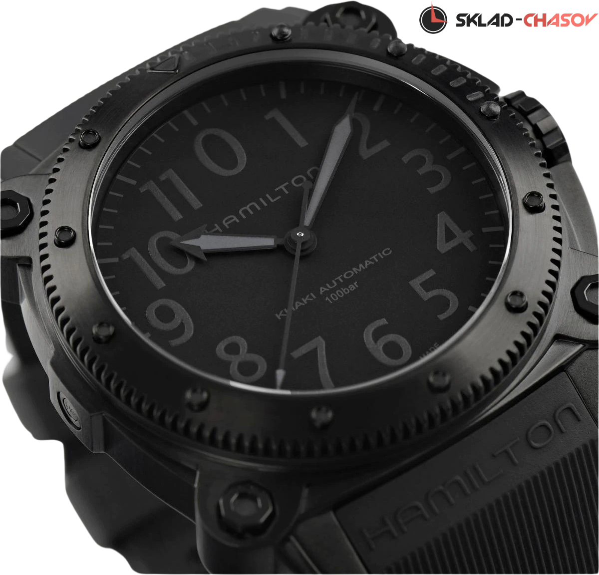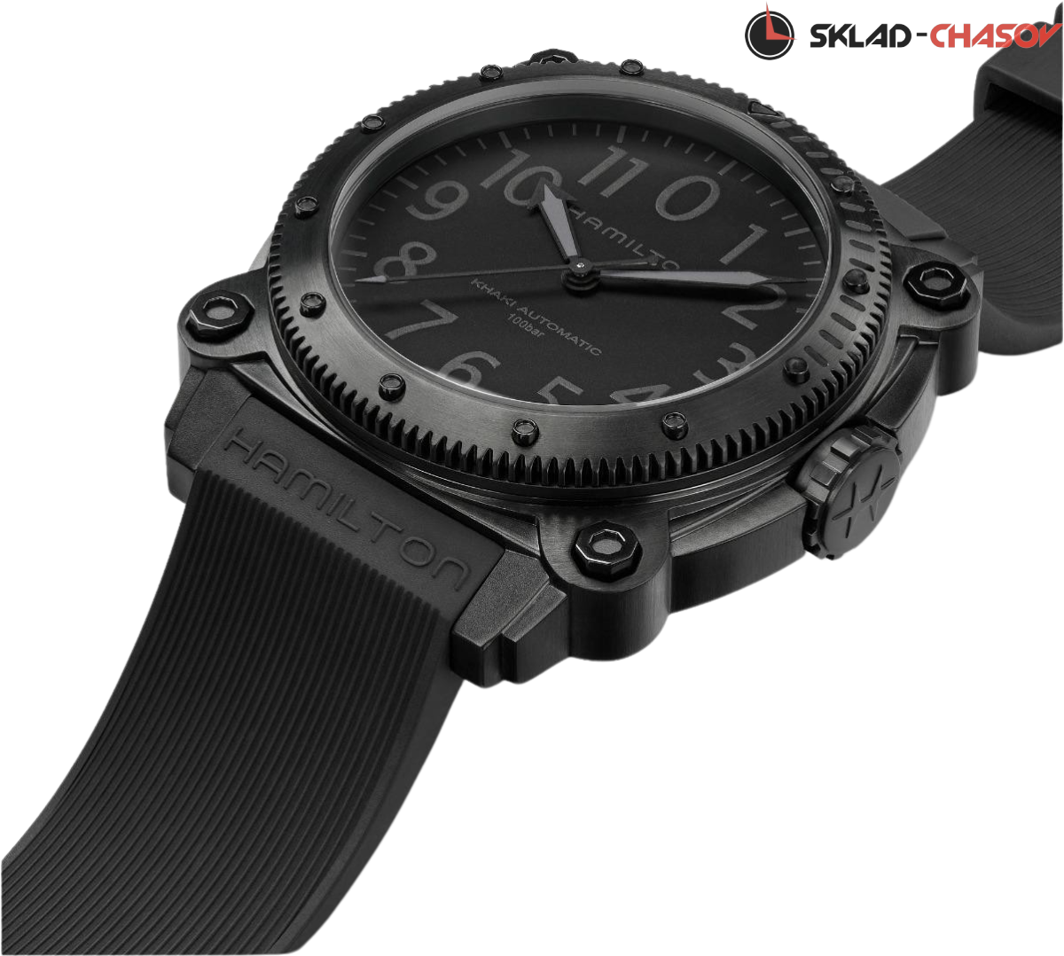 Титановый корпус Khaki Navy BeLOWZERO отличается особой легкостью и прочностью. Часы обладают водонепроницаемостью до 1000 м и оснащены гелиевым клапаном.