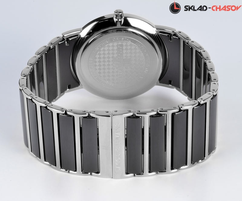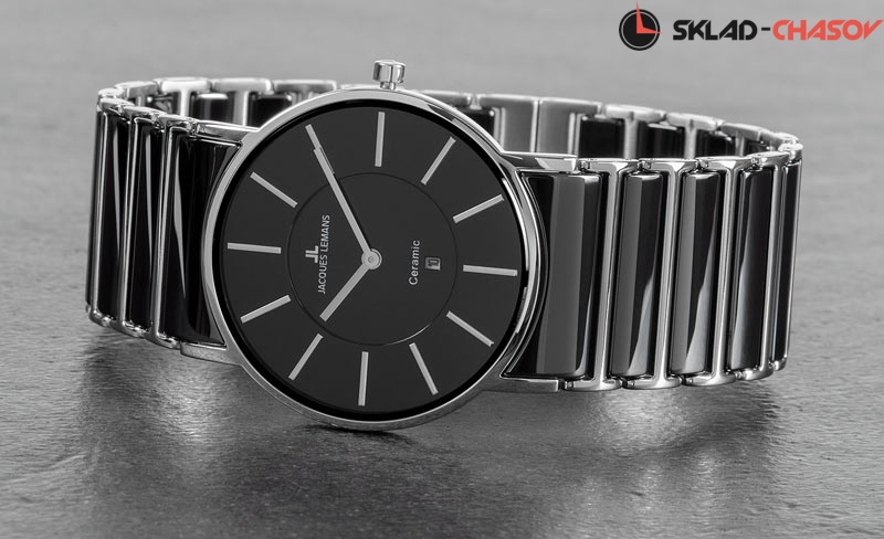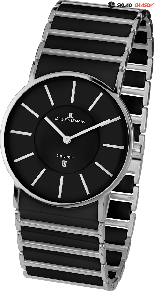 Элегантные кварцевые часы из серии York. Тонкий корпус диаметром 38 мм сделан из нержавеющей стали. Циферблат черного цвета, лаконичный и функциональный, привлекает внимание хорошо читаемыми рисками и стрелками. В позиции «6 часов» расположено окошко даты. В модели установлено сапфировое стекло. Звенья браслета сделаны из высокотехнологичной керамики. Это современный материал, который стойко сопротивляется появлению микроцарапин и, обладая натуральным блеском, способен надолго сохранить внешний вид ваших часов. На браслет установлена надежная застежка-клипса. Часы Жак Леман - статусный аксессуар, ваш идеальный компаньон в любой ситуации.