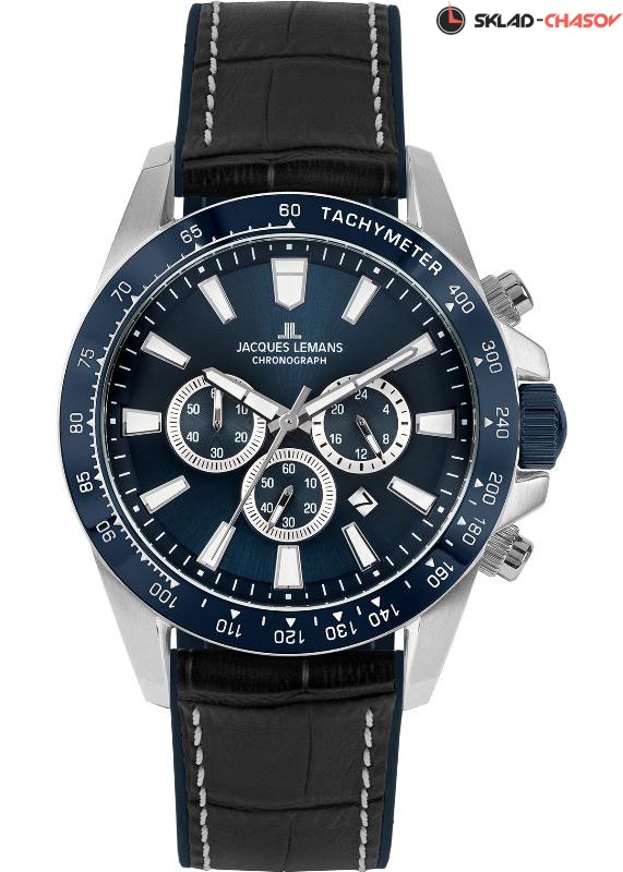 Мужские кварцевые часы Jacques Lemans с механизмом TMI. Корпус выполнен из стали, ремешок из натуральной кожи. Стекло минеральной Crystex. Размер корпуса 48 мм. Водозащита 10 АТМ.