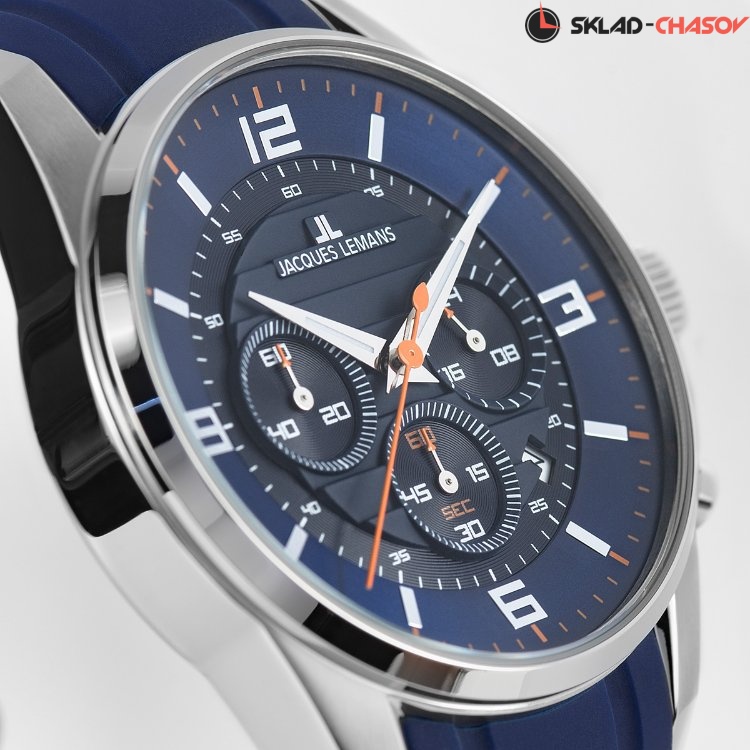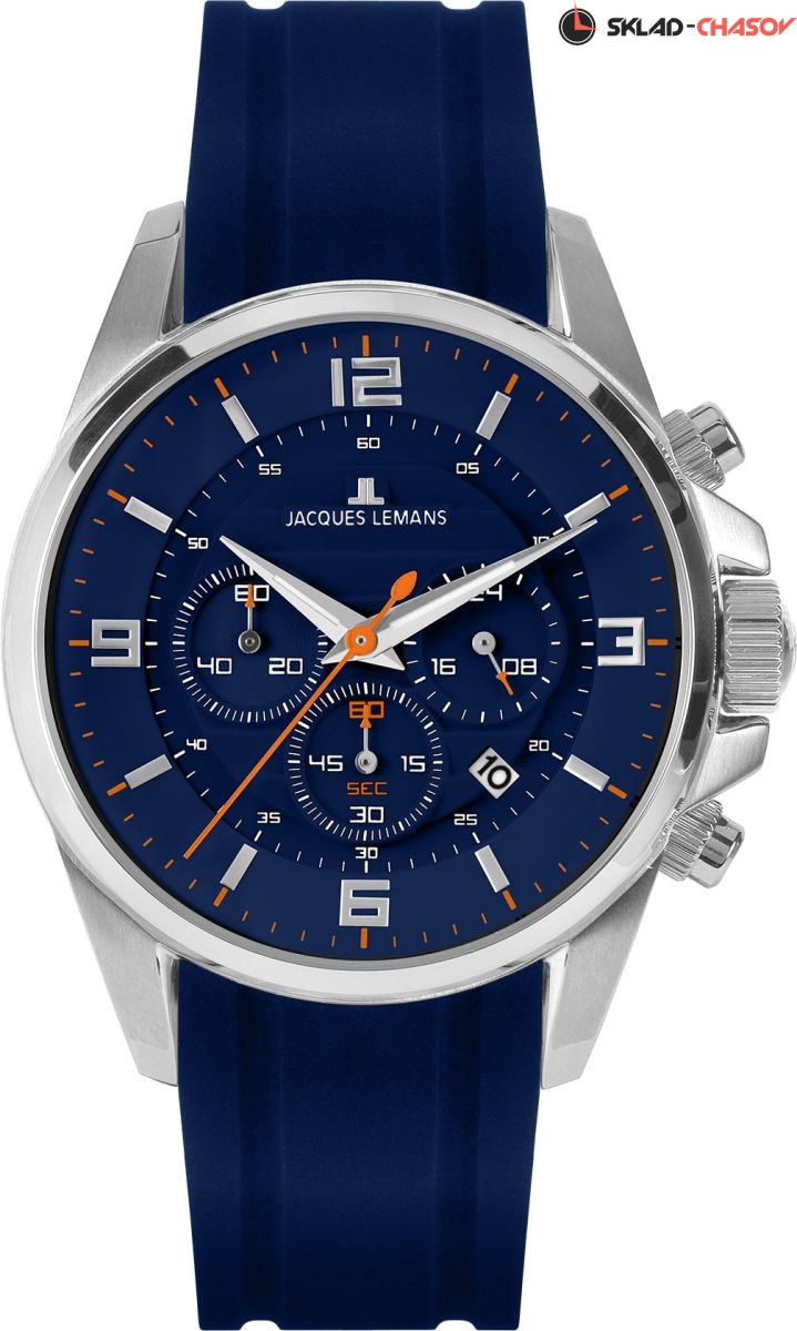 Спортивные часы с ярким характером! Корпус хронографа из нержавеющей стали диаметром 44 мм удобно ложится на запястье благодаря эргономичной форме «ушек». На синем циферблате размещены дополнительные индикаторы 24-часов, даты, счетчики минут и секунд. В часах с кварцевым механизмом установлено ударопрочное минеральное стекло Crystex. Водостойкость повышенная, 10 атмосфер, это значит, что в часах можно плавать. Синий ремешок из силикона очень функционален: этот материал не боится повышенной влажности, не деформируется со временем и позволяет коже запястья дышать. Хронограф 2118 хорошо подойдет как для спортивного, так и для повседневного образа.