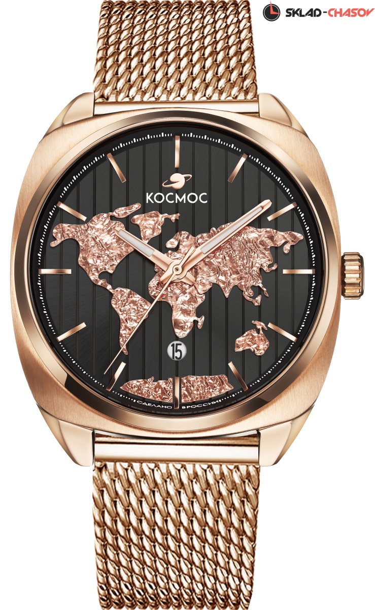 Форма корпуса часов, квадрат со сглаженными углами — это отсылка к моделям прошлых лет. Корпус сделан из нержавеющей стали, часть с зеркальной полировкой, часть с матированием. Тонкий безель напоминает иллюминатор космического аппарата, сквозь который космонавт наблюдает за величественной планетой Земля: очертания континентов украшают серый циферблат. На фоне этих рельефных накладных элементов движутся три стрелки. Часовая и минутная покрыты специальным люминесцентным составом, который в темноте светится приятным зеленоватым светом, позволяя определять время при любых условиях видимости. На 6 часах расположено лаконичное окошко даты. Вертикальные полосы гильоше усиливают эффект объема. Накладные риски выделены зеркальной полировкой. Циферблат защищен с помощью минерального стекла. Задняя крышка корпуса прозрачная. Такое решение позволяет в подробностях рассмотреть механизм TMI с функцией автоподзавода: его ротор украшает надпись «Сделано в России» и гравировка, изображающая космонавта. Задняя крышка крепится на четырех винтах, обеспечивая повышенную водостойкость 10 атмосфер (100 метров).