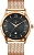Строгие и элегантные кварцевые мужские часы линии Carcassonne. Корпус часов изготовлен из высоколегированной нержавеющей стали 316L с PVD-покрытием розового золота и представляет собой чередование полированных и матированных частей. Это делает корпус привлекательным и создает на нем интересные переливы света. Центральная часть черного циферблата декорирована гильоше в виде паттернов дубового листа. На матовое кольцо вынесены индексы часов, которые изготовлены вручную в форме пирамидок. На уровне шести часов расположен индикатор даты. Благодаря мечеобразной форме часовая и минутная стрелки смотрятся объемно и хорошо читаются. Сапфировое стекло надежно защищает циферблат часов. Застежка, задняя крышка и заводная головка часов декорированы логотипом марки - «дубовый лист», который олицетворяет мудрость и долговечность. Водонепроницаемость часов – 5 атмосфер. Завинчивающаяся задняя крышка на 4 винтах обеспечивает данный уровень защиты от воды.