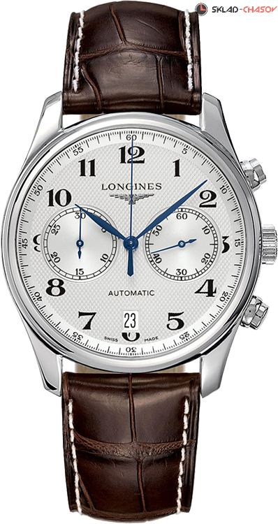 Мужской двухсекционный хронограф, окошко даты в положении 6 часов, прозрачная задняя крышка