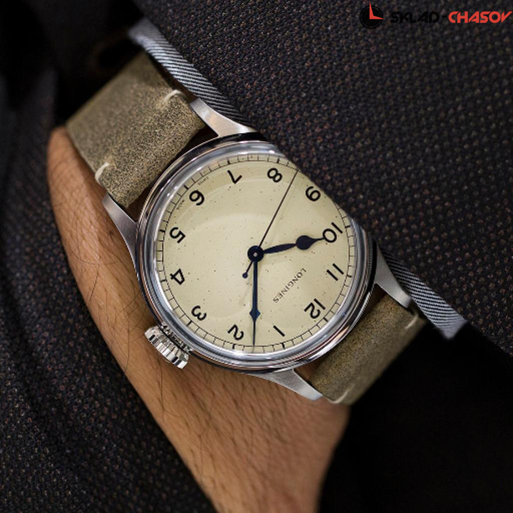 Мужская модель в винтажном стиле. Индикация часов, минут и секунд центральными стрелками. Вороненые стрелки и нарисованные арабские цифры. Задняя крышка с гравировкой.