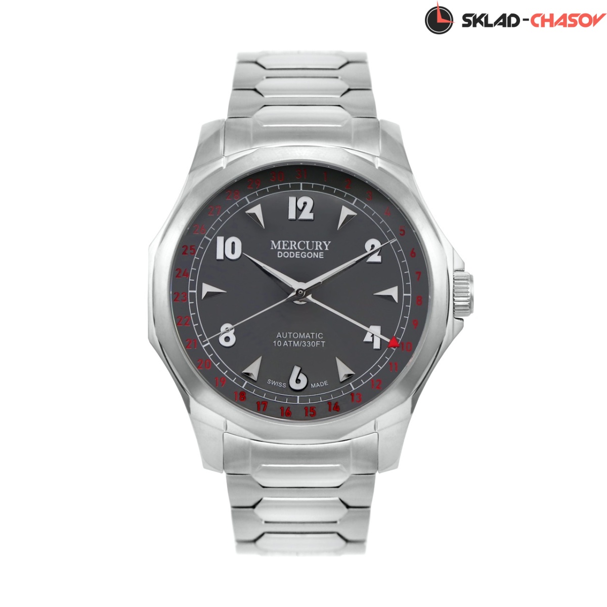 Автоматические Мужские часы Mercury, коллекция Dodegone (MEA479-SS-2), производство ШВЕЙЦАРИЯ, диаметр - 44 мм, материал корпуса - Сталь, Браслет, материал браслета - Сталь, циферблат - Серый, Арабские цифры и Метки, Дата