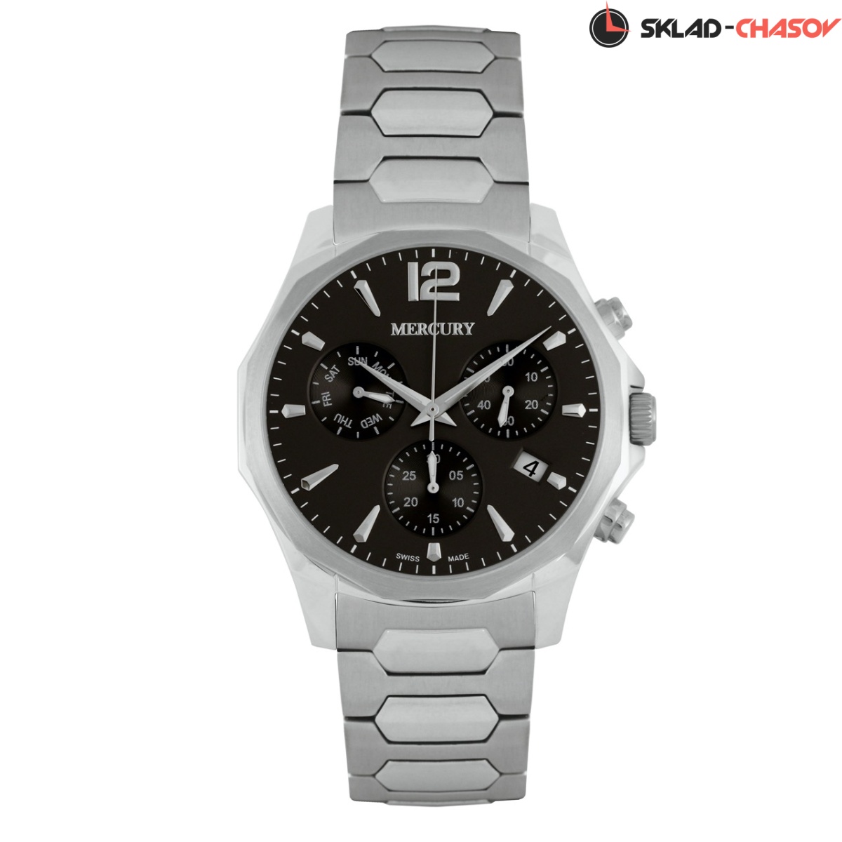Кварцевые Мужские часы Mercury, коллекция Dodegone (MEC463-SS-3), производство ШВЕЙЦАРИЯ, диаметр - 43,5 мм, материал корпуса - Сталь, Браслет, материал браслета - Сталь, циферблат - Черный, Арабские цифры и Метки, Дата, День недели, Хронограф