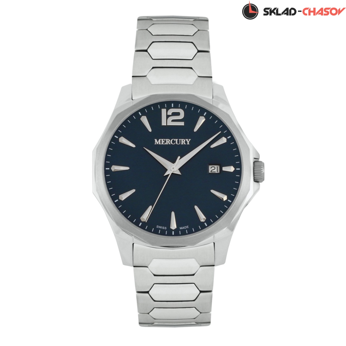 Кварцевые Мужские часы Mercury, коллекция Dodegone (MEM466-SS-9), производство ШВЕЙЦАРИЯ, диаметр - 41 мм, материал корпуса - Сталь, Браслет, материал браслета - Сталь, циферблат - Синий, Арабские цифры и Метки, Дата