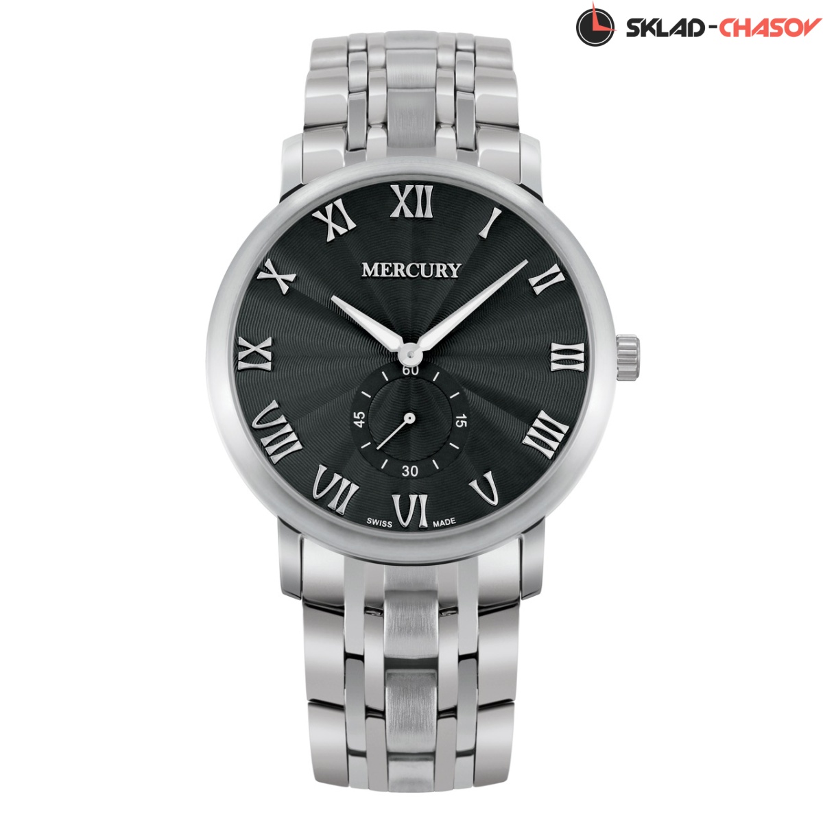 Кварцевые Мужские часы Mercury (ME405-SS-3), производство ШВЕЙЦАРИЯ, диаметр - 42 мм, материал корпуса - Сталь, Браслет, материал браслета - Сталь, циферблат - Черный, Римские цифры