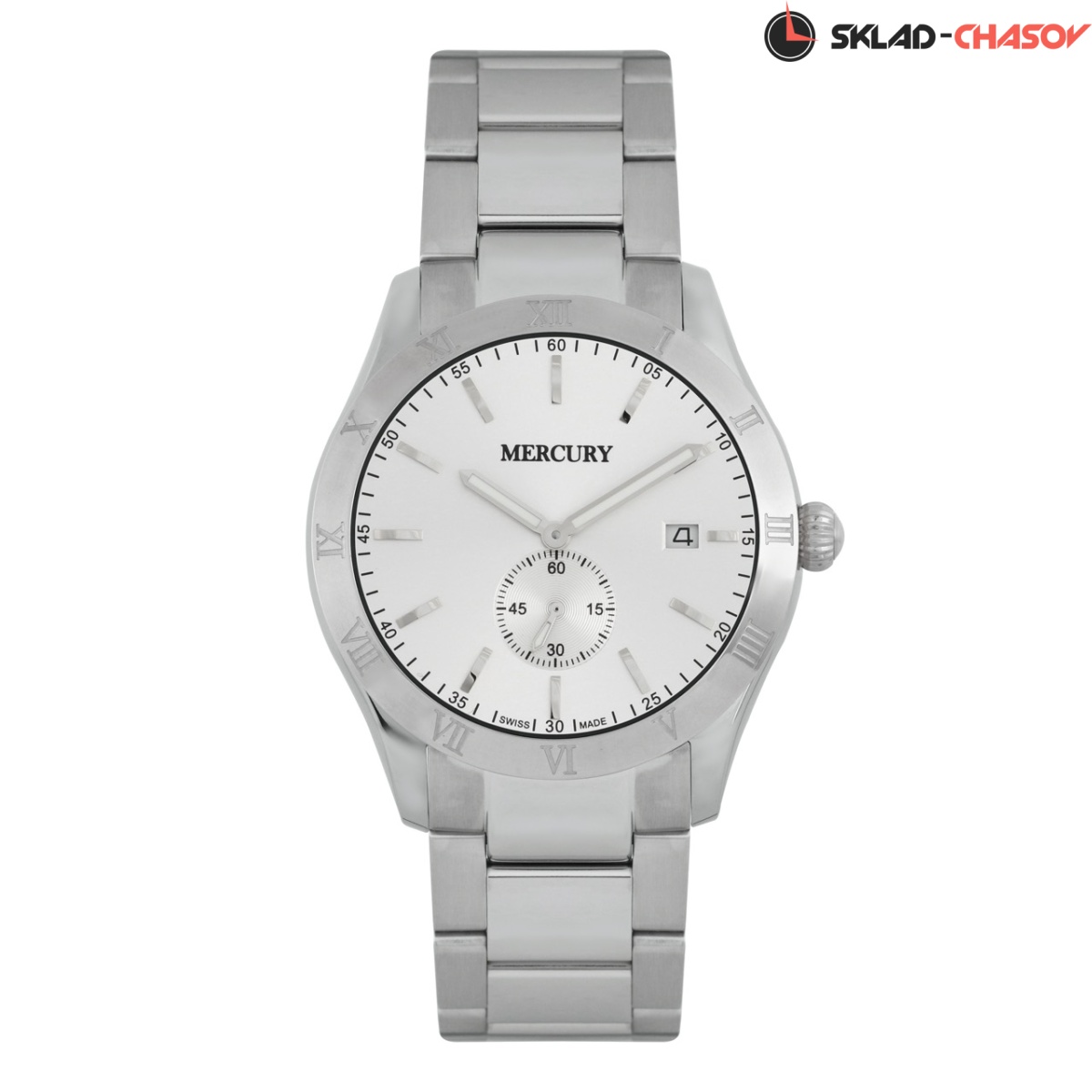 Кварцевые Мужские часы Mercury (MEM469-SS-1), производство ШВЕЙЦАРИЯ, диаметр - 42,5 мм, материал корпуса - Сталь, Браслет, материал браслета - Сталь, циферблат - Серебристый, Метки, Дата