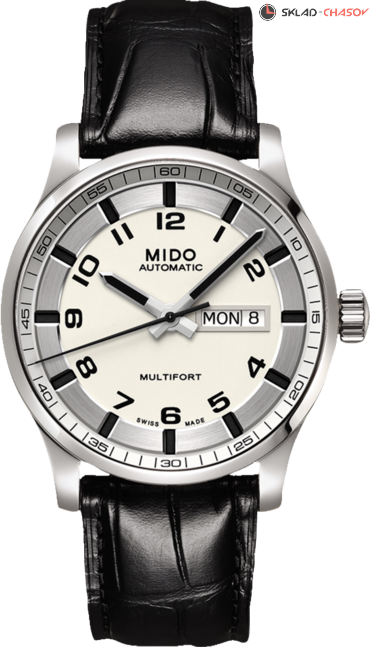Мужская модель с индикацией часов, минут и секунд центральными стрелками, окошко даты и дня недели в положении 3 часа.