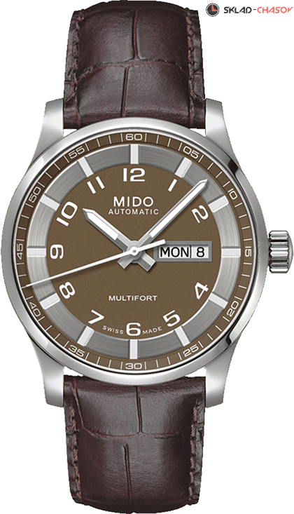 Мужская модель с индикацией часов, минут и секунд центральными стрелками, окошко даты и дня недели в положении 3 часа.