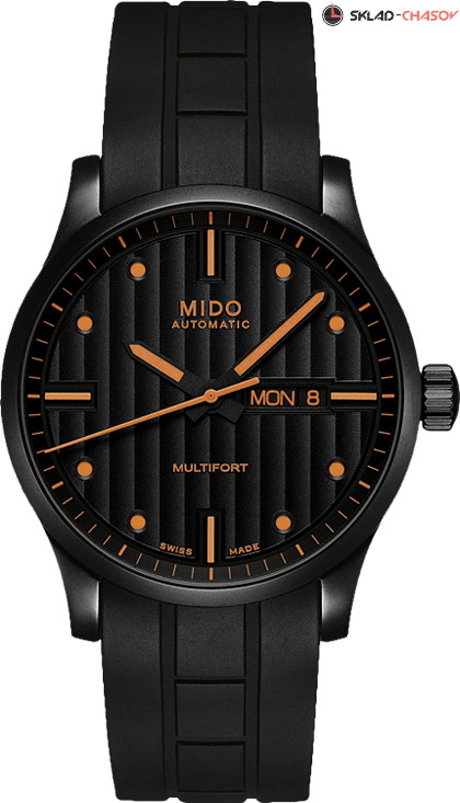 Классические мужские часы, выполненные в сочетании 2 цветов: чёрного и оранжевого. Необычный гильошированный циферблат притягивает внимание. Надёжный механизм может показать не только стандартное время, но и день недели с числом в специальном окошке на отметке "3" часов. Данная модель станет верным спутником на Вашем запястье.
