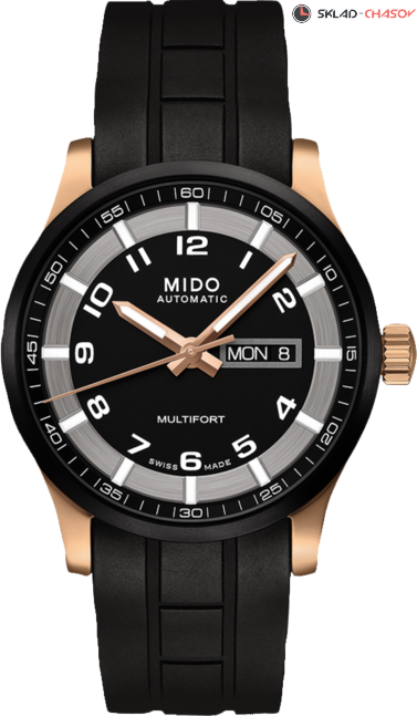Мужская модель с индикацией часов, минут и секунд центральными стрелками, окошко даты и дня недели в положении 3 часа.