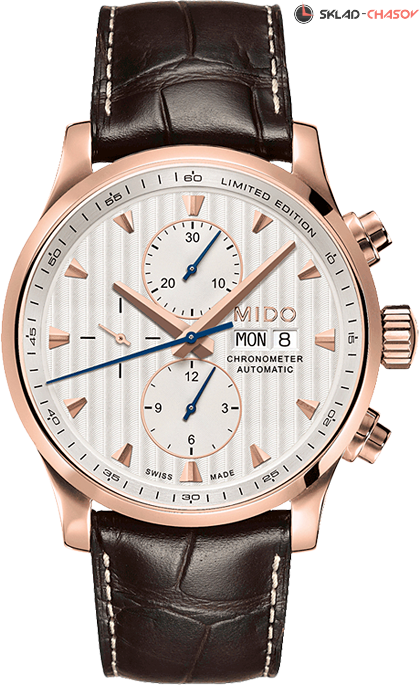 Хронометр C.O.S.C. Необычный гильошированный циферблат притягивает внимание. Доработанный механизм, построенный на базе легендарного Valjoux 7750 может показать текущее время, число и день недели, а так же замерить время от 1 секунды до 12 часов благодаря хронографу.