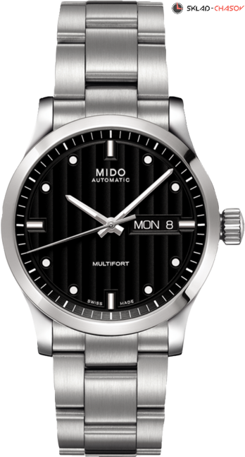 Мужские часы. Индикация часов, минут, секунд центральными стрелками. Окошко даты и дня недели в положении 3 часа. Циферблат украшен узором гильоше.