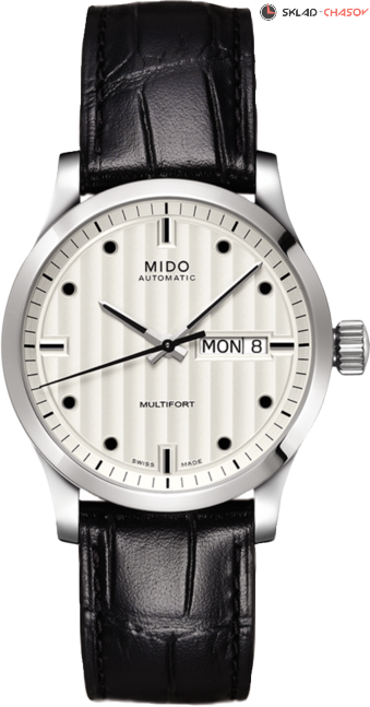 Мужские часы. Индикация часов, минут, секунд центральными стрелками. Окошко даты и дня недели в положении 3 часа. Циферблат украшен узором гильоше.