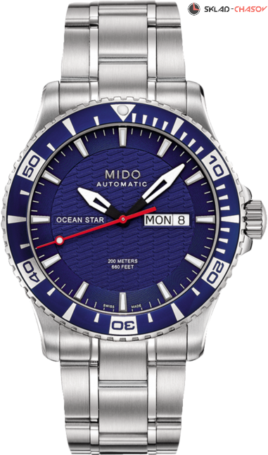 Классический дайвер. Однонаправленно вращающийся безель. Индикация даты и дня недели в положении 3 часа. Покрытие SuperLuminova на стрелках и разметке.