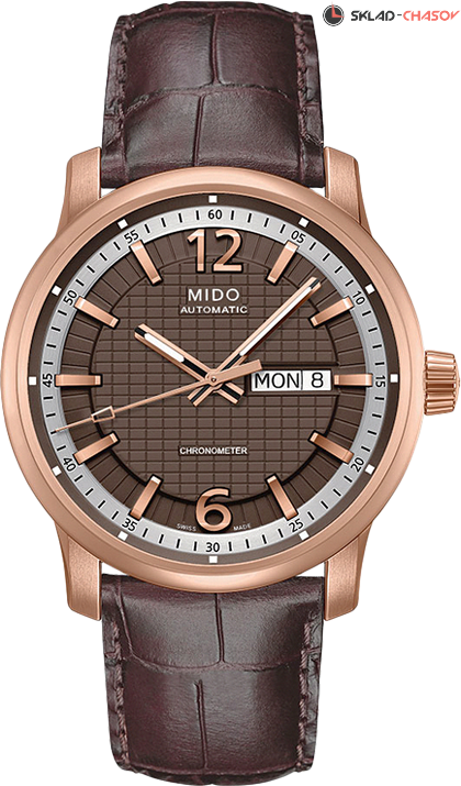 Стильные мужские часы. Хронометр C.O.S.C. Индикация часов, минут и секунд центральными стрелками. Окошко даты дня недели в положении 3 часа. Циферблат выполнен с узором гильоше.
