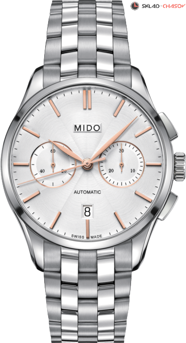 Классические мужские часы. Циферблат с узором гильоше. Двухсекционный хронограф, 30-минутный счетчик на 3 часа и малая секунда на 9 часов. Апертура даты на 6 часов. Прозрачная задняя крышка.