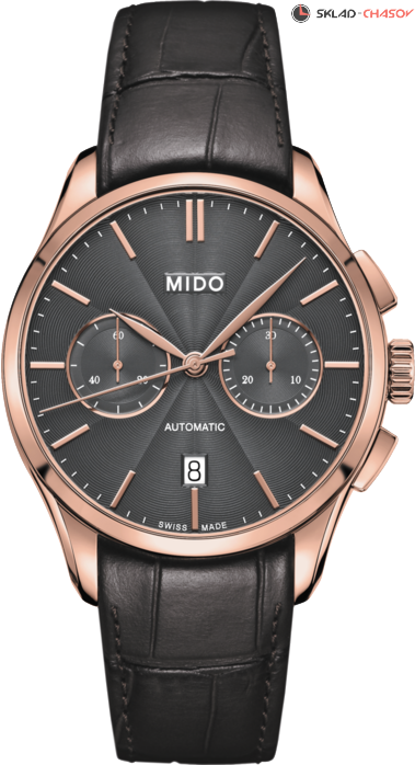 Классические мужские часы. Циферблат с узором гильоше. Двухсекционный хронограф, 30-минутный счетчик на 3 часа и малая секунда на 9 часов. Апертура даты на 6 часов. Прозрачная задняя крышка.