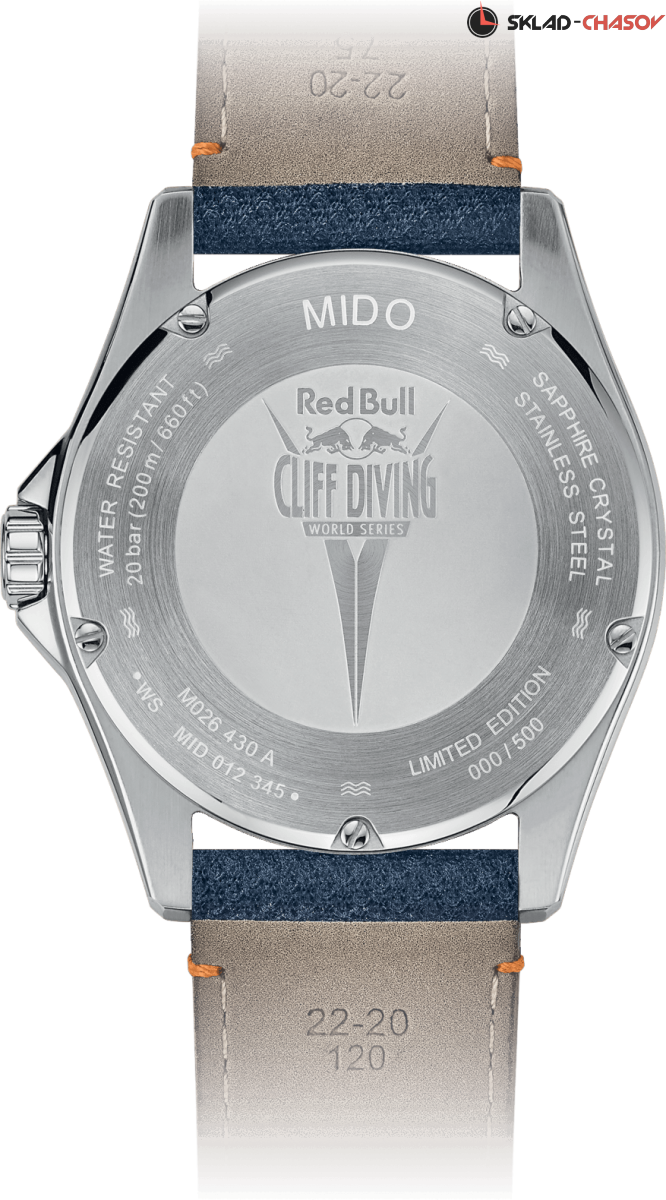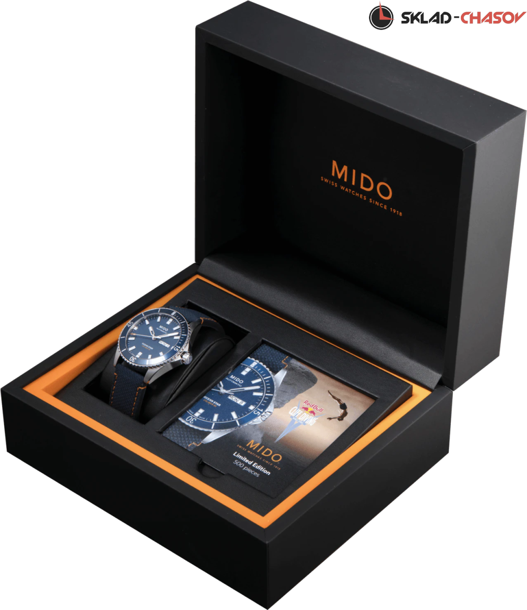 С 2019 года Red Bull Cliff Diving и Mido стали официальными партнёрами. В 2021 году, после небольшого перерыва чемпионат снова возобновится и бренд посвящает этому событию особенные часы:Red Bull Cliff Diving. Однонаправленно вращающийся безель. Индикация даты и дня недели в положении 3 часа. Покрытие SuperLuminova на стрелках и разметке. Задняя крышка часов украшена тематической гравировкой в честь чемпионата.