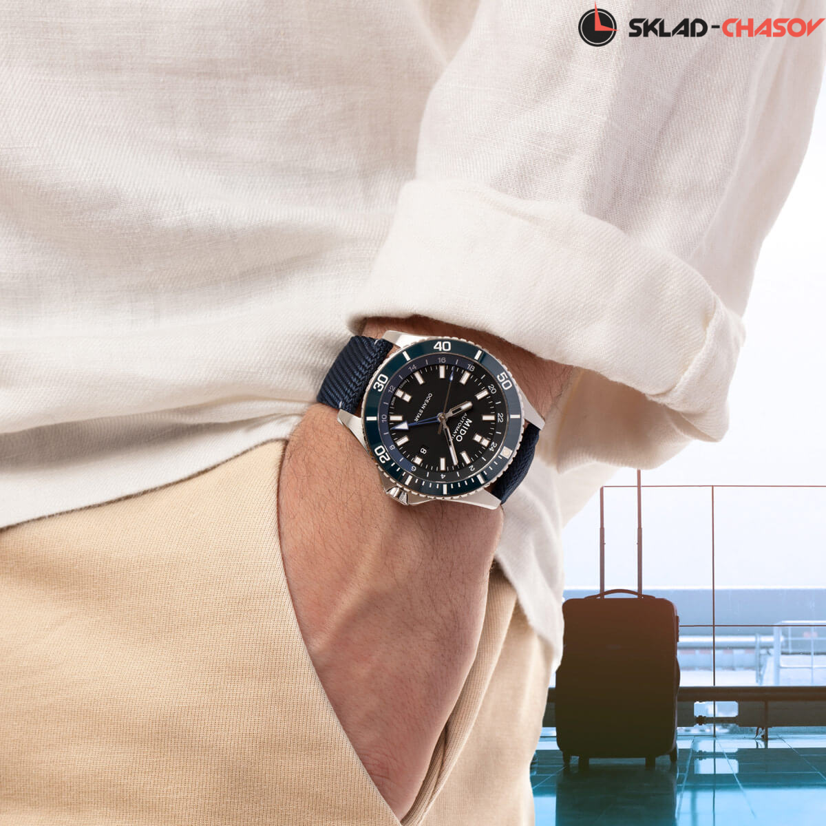 Мужская механическая модель с автоподзаводом. Функция второго часового пояса, покрытие Superluminova на стрелках и разметке. Окошко даты в районе 3 часов.