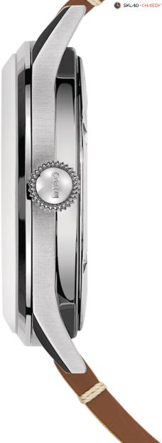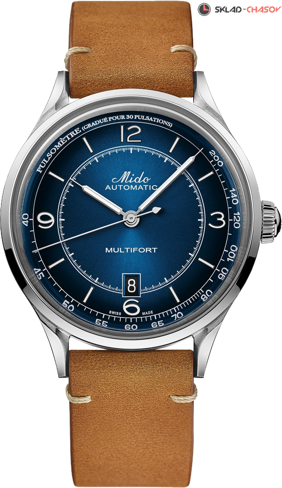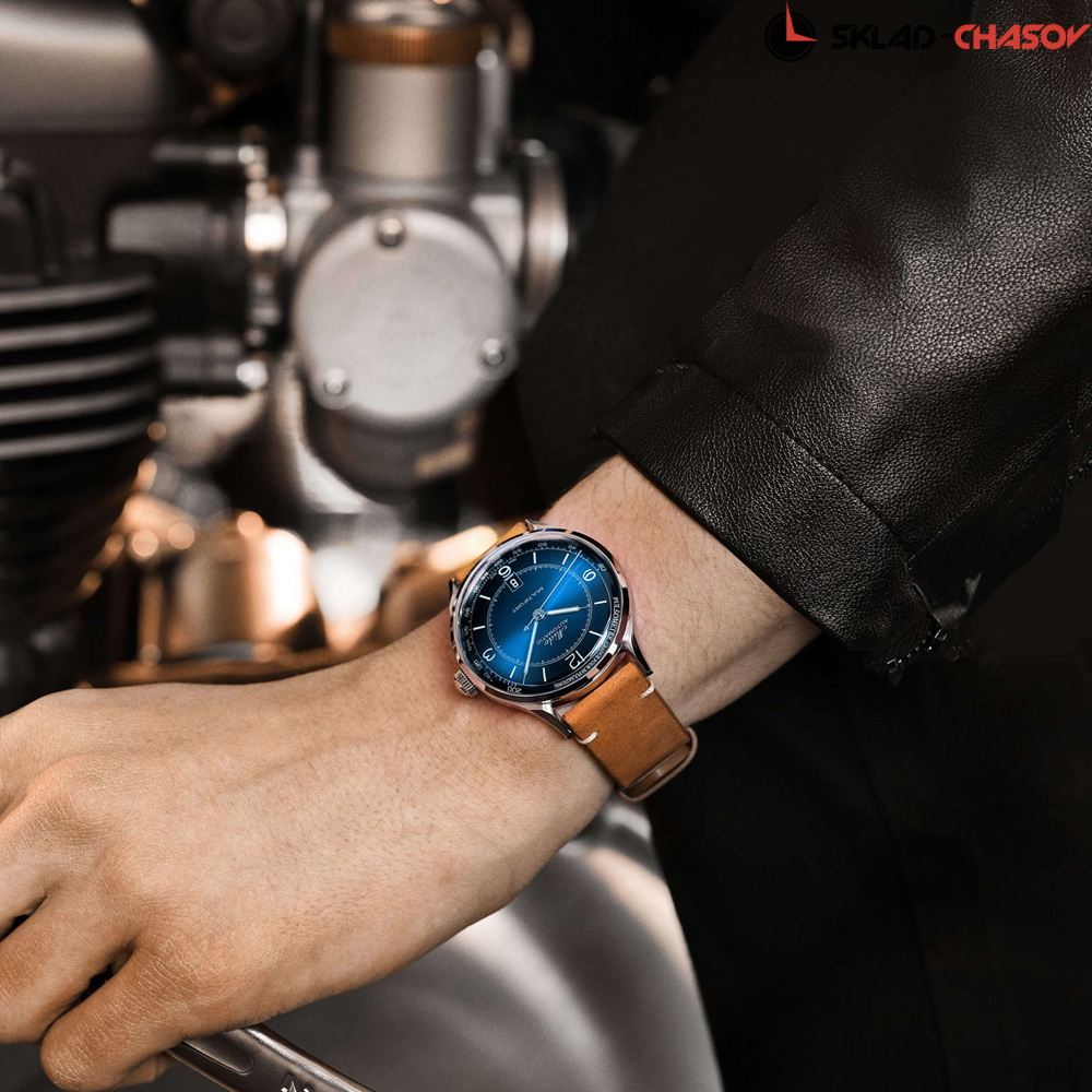 Винтажная модель с запасом хода до 80 часов. Нанесенная по периметру циферблата шкала пульсометра, выпуклое сапфировое стекло, а также форма часовой и минутной стрелок с отсылкой к ретро стилю.