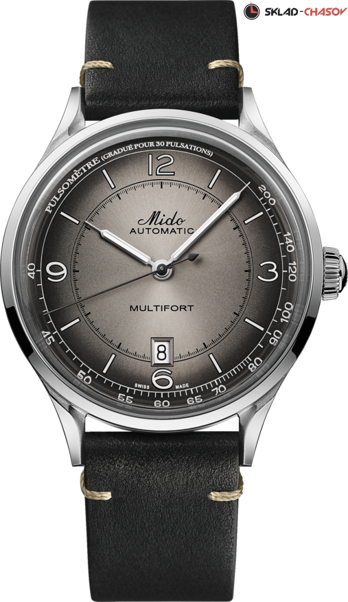 Винтажная модель с запасом хода до 80 часов. Нанесенная по периметру циферблата шкала пульсометра, выпуклое сапфировое стекло, а также форма часовой и минутной стрелок с отсылкой к ретро стилю.
