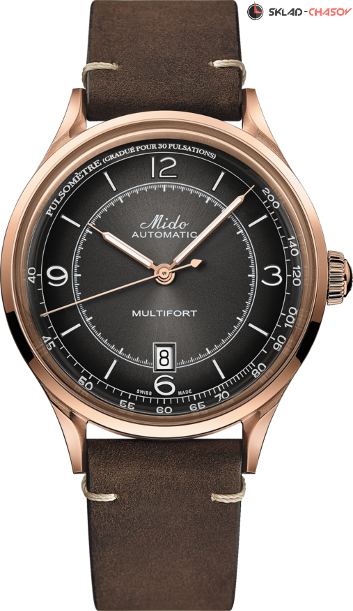 Винтажная модель с запасом хода до 80 часов. Нанесенная по периметру циферблата шкала пульсометра, выпуклое сапфировое стекло, а также форма часовой и минутной стрелок с отсылкой к ретро стилю.