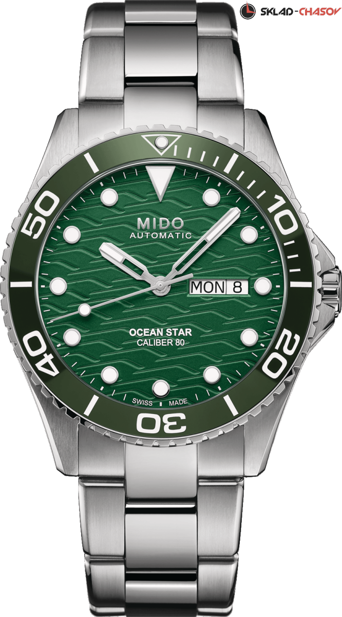 Классический дайвер. Однонаправленно вращающийся безель. Индикация даты и дня недели в положении 3 часа. Покрытие SuperLuminova на стрелках и разметке.