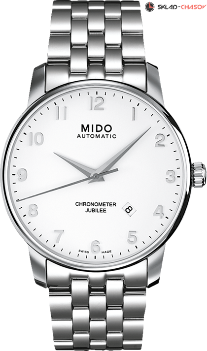 Классическая мужская модель. Полированные накладные цифры, апертура даты между 4 и 5 часами. Через прозрачную заднюю крышку видно автоматический механизм, хронометр.