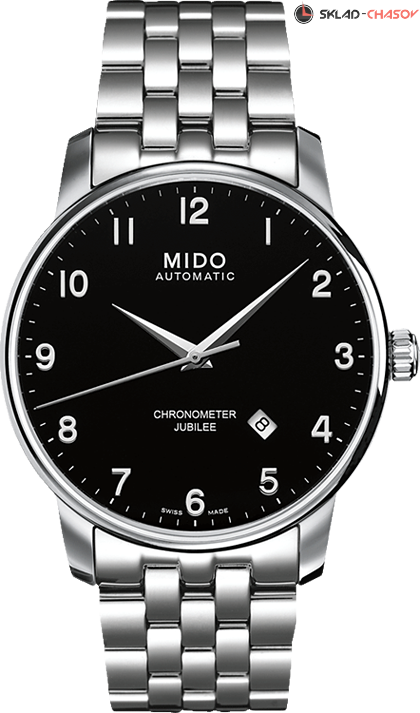 Классическая мужская модель. Полированные накладные цифры, апертура даты между 4 и 5 часами. Через прозрачную заднюю крышку видно автоматический механизм, хронометр.