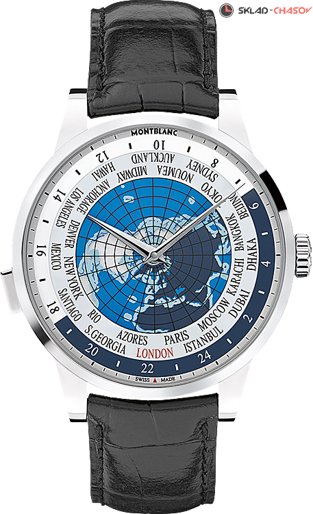 Мужская модель, циферблат украшен изображение земного шара, отображение времени в 24 часовых поясах, а также наглядно показывает смену дня и ночи во всех поясах.