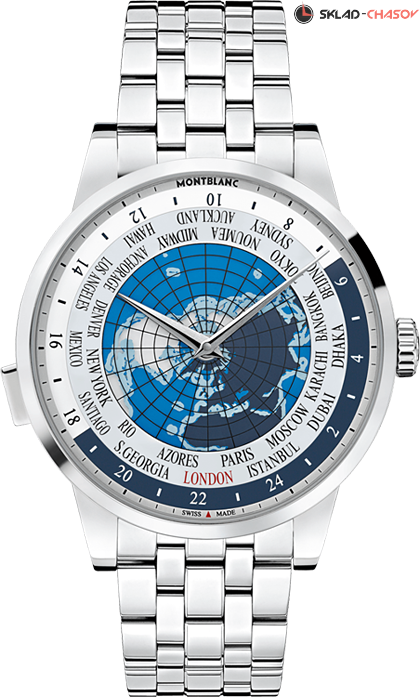 Мужская модель, циферблат украшен изображение земного шара, отображение времени в 24 часовых поясах, а также наглядно показывает смену дня и ночи во всех поясах.