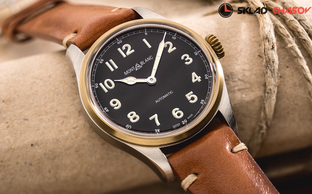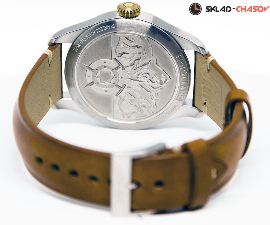 Элегантная мужская механическая модель с автоподзаводом. Задняя крышка украшена выгравированным горным массивом Монблан.