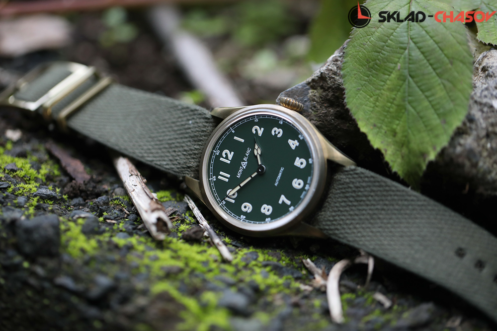Элегантная мужская механическая модель с автоподзаводом. Лимитированная серия из 1858 экземпляров. Задняя крышка украшена выгравированной вершиной горы Монблан.